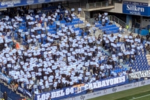 体育资讯2月15日讯 皇家奥维耶多主场对阵毕尔巴鄂竞技的比赛正在进行之中,奥维耶多球迷举标语抗议西甲。