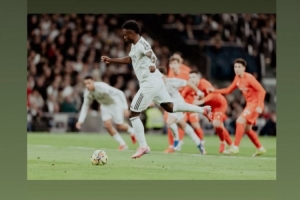 西甲第24轮比赛,维尼修斯点射双响,皇马主场4-1击败皇家社会。其中维尼修斯两个点球都是跳步主罚,这也是若日尼奥标志性的罚点方式。