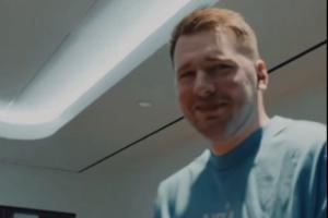 这时候东契奇才刚刚走进来,一脸无奈(封面图)。