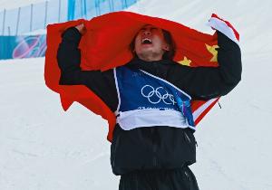第一枚金牌是在北京冬奥会上夺得男子单板滑雪大跳台冠军,第二枚金牌则是本届冬奥会上夺得的单板滑雪男子坡面障碍技巧冠军。
