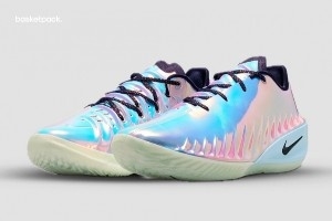 这双Nike G.T. Cut 4和此前曝光的几位球星签名鞋一样都是属于Warning Label系列,鞋面都采用了亮面金属质感材质。而作为文班亚马的PE,鞋后跟有代表文班亚马的外星人头像Logo。鞋带位置则有一个外星人造型的配饰。