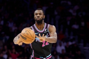 体育资讯2月22日讯 热火主场迎战灰熊的比赛,热火上半场73-68暂时领先。