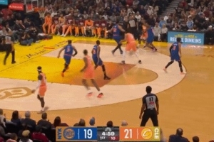 GIF-哈登击地妙传贾勒特·阿伦顶着人挑篮打成2+0
