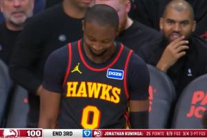 此役,库明加老鹰生涯首秀,他出战24分27秒,投篮12中9,三分4中3,罚球7中6,得到27分7篮板4助攻2抢断。