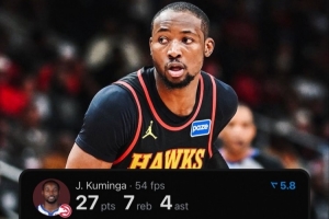 本场比赛,老鹰新援库明加迎来首秀,他替补出战24分27秒,12中9,其中三分4中3,罚球7中6,得到27分7篮板4助攻2抢断,正负值+16。