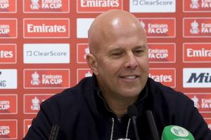 斯洛特:他热爱这家俱乐部,热爱在这些球迷面前踢球。顺便说一句,这些球迷太棒了,在三天前那么失望之后,周五晚上又再次来到这里。我不确定是否都是同一批人,但人数肯定更多了,因为足总杯允许更多客队球迷。