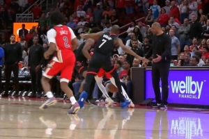 下一篇: 没大碍!爱德华兹和霍福德抢篮板时被后者踩到脚踝 手捂着不舒服