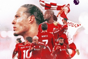 利物浦官方社媒发布了为此役制作的海报,范戴克、萨拉赫、埃基蒂克、麦卡利斯特、维尔茨、加克波、科纳特、索博斯洛伊出镜。