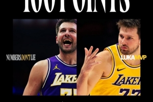 湖人官方晒图道:“东契奇在24小时内得到100分,数据不会说谎,这不仅仅是数据,这更是一种宣言。”