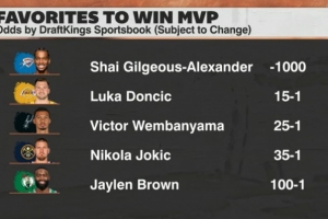期间,节目组给出了最新的MVP赔率,东契奇已升至第2热门,但与第1的亚历山大仍有巨大差距。