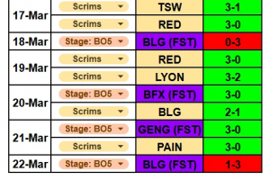 体育资讯3月26日讯 随着先锋赛落幕,近日G2经理分享训练赛战绩,期间训练赛和正赛共6-1 GEN!