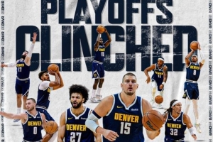 这场过后,西部第四的掘金也正式锁定了一个季后赛席位。
