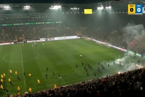 北京时间周日凌晨,德累斯顿迪纳摩在主场0-1不敌柏林赫塔。据《图片报》报道,双方球迷间发生了恶劣的冲突,比赛因此被迫中断了20分钟。冲突的导火索是德累斯顿迪纳摩的极端球迷展示了一面疑似被盗的柏林赫塔旗帜,并唱起了嘲讽歌曲。这激怒了柏林赫塔的球迷,他们跳入内场并向对方球迷区投掷烟火。与此同时,德累斯顿迪纳摩的极端球迷也冲入内场,与柏林赫塔球迷发生对峙。大约有100名德累斯顿球迷和30名柏林赫塔球迷对峙了约一分钟,直到警方介入才平息了局势。随后,德累斯顿球迷点燃了那面被偷走的柏林赫塔旗帜。在比赛中断了约20分钟后,裁判雅布隆斯基重新吹响了比赛哨声。