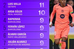 体育资讯02月05日讯 截止西甲22轮,据Squawka统计,亚马尔在多项数据霸榜。