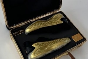 这双球鞋是为爱德华兹奥运夺冠打造的金牌配色AE 1 Low,而库里这双还在侧面加上了库里美国队的号码4号、后跟提环上则是有库里名字“WSC”。